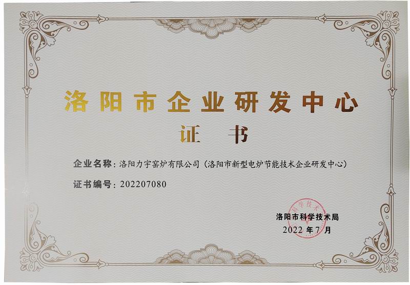 洛陽(yáng)市企業(yè)研發(fā)中心證書(shū)